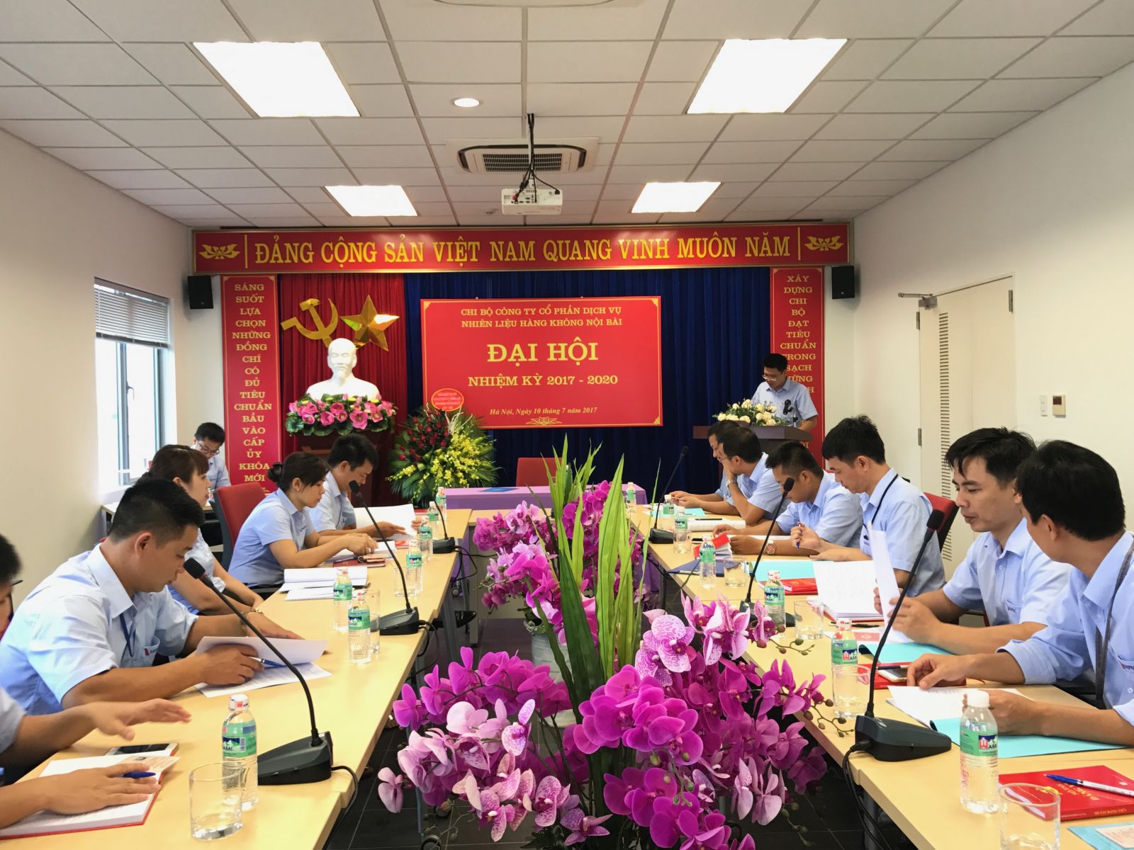 Ngày 10/07/2017, Chi bộ Công ty cổ phần dịch vụ nhiên liệu hàng không Nội Bài đã tổ chức Đại hội nhiệm kỳ 2017-2020 với sự tham gia của toàn thể các đồng chí Đảng viên trong Chi bộ.