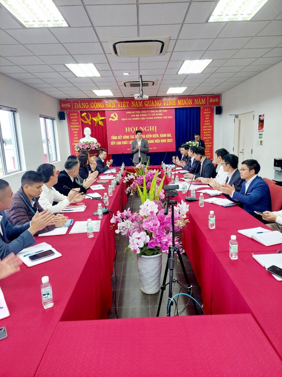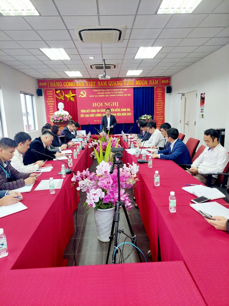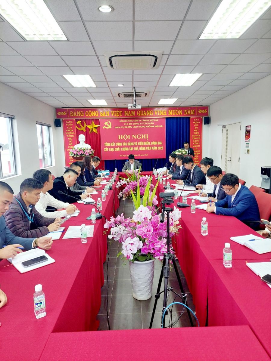 Ngày 21/12/2023, Chi bộ Công ty cổ phần dịch vụ nhiên liệu hàng không Nội Bài đã long trọng tổ chức Hội nghị tổng kết công tác Đảng và kiểm điểm, đánh giá, xếp loại chất lượng tập thể, đảng viên năm 2023. Tham dự và chỉ đạo Hội nghị có sự hiện diện của đồng chí Lê Văn Khiên – Đảng uỷ viên Ban chấp hành Đảng bộ Tổng công ty Cảng hàng không Việt Nam, cùng với đó là sự có mặt của toàn thể các đồng chí Đảng viên trong Chi bộ Công ty cổ phần dịch vụ nhiên liệu hàng không Nội Bài.