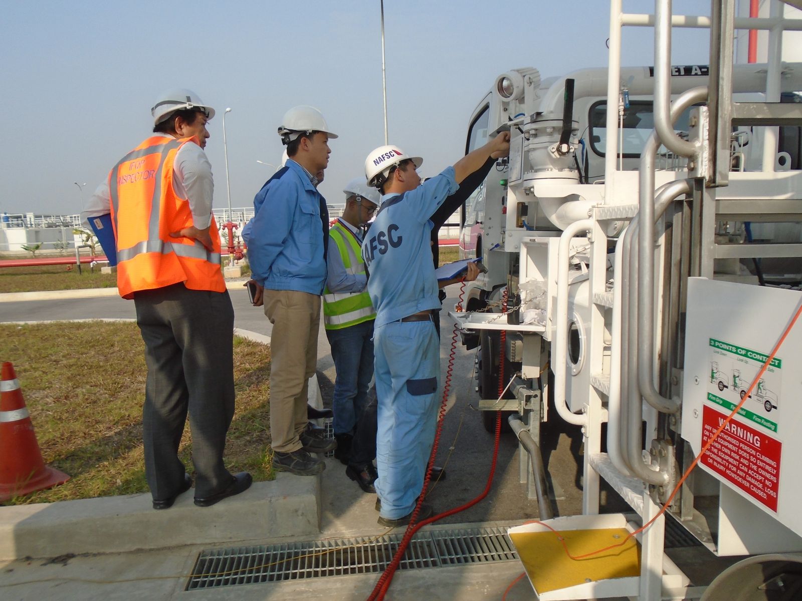 Vào ngày 22-23/12/2015, đoàn kiểm tra của IATA đã tiến hành đánh giá hệ thống nhiên liệu ngầm của NAFSC lần thứ 5. Trong lần đánh giá này, đại diện của IATA đã kiểm tra, đánh giá các biểu mẫu, công việc cần thực hiện định kỳ hàng năm. Bên cạnh đó đoàn đánh giá cũng đã kiểm tra quy trình đảm bảo chất lượng tại các công đoạn nhập nhiên liệu, lưu trữ tại bể chứa và chuẩn bị tra nạp cho tàu bay. Đại diện của IATA đã đưa ra những ý kiến nhận xét, đóng góp để NAFSC tiếp tục hoàn thiện hệ thống tài liệu cũng như đảm bảo công tác vận hành. Dưới đây là một số hình ảnh lần kiểm tra này của đoàn: