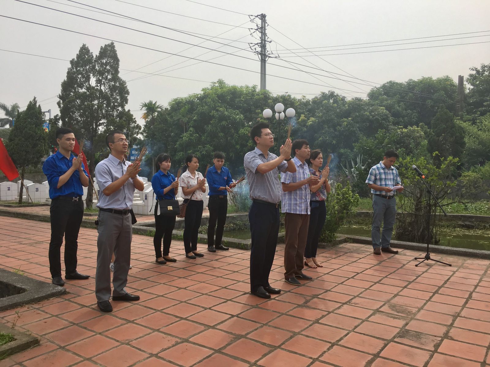Các đoàn viên thắp hương tại mộ các anh hùng liệt sỹ