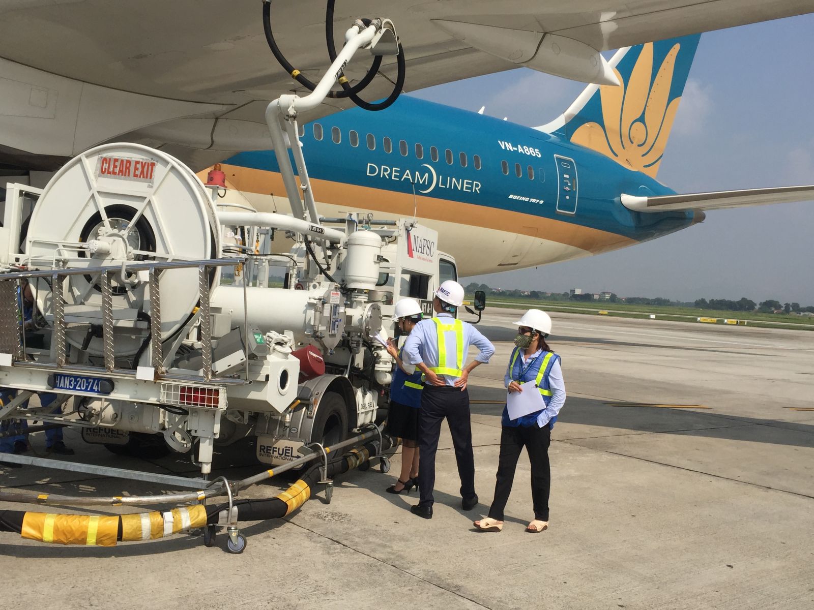 Đoàn tiến hành đánh giá công tác tra nạp cho chuyến bay của VNA
