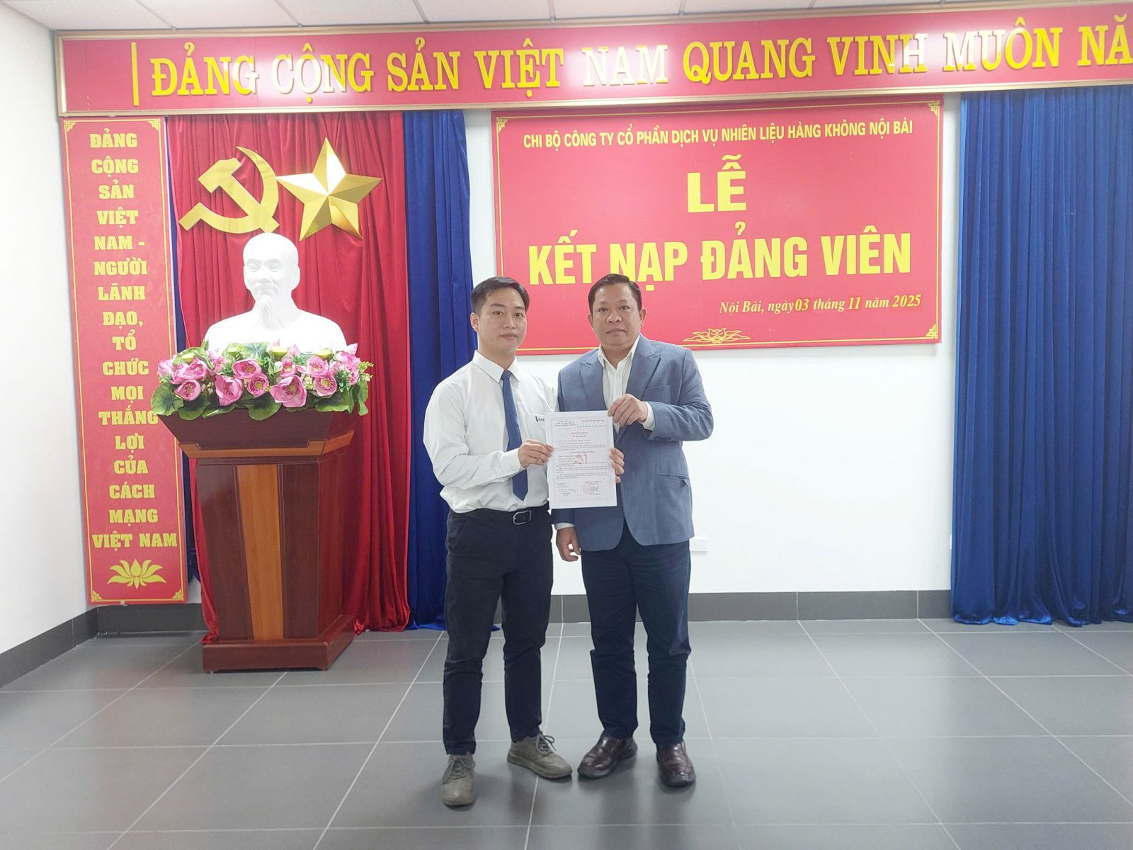 Sáng ngày 03/11/2025, Chi bộ Công ty Cổ phần dịch vụ nhiên liệu hàng không Nội Bài đã long trọng tổ chức Lễ kết nạp đảng viên cho đồng chí Lê Ngọc Nam - Kíp trưởng Tổ điều hành thiết bị trung tâm - Phòng Khai thác hệ thống. Tham dự buổi lễ kết nạp đảng viên có 38 đồng chí đảng viên trong chi bộ.