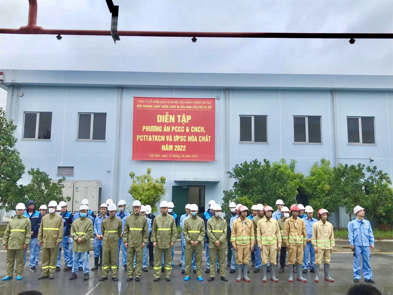 Sáng ngày 21/10/2022, Công ty cổ phần dịch vụ nhiên liệu hàng không Nội Bài (NAFSC) tổ chức buổi diễn tập phương án phòng cháy chữa cháy & cứu nạn cứu hộ, phòng chống thiên tai & tìm kiếm cứu nạn và sự cố hoá chất năm 2022. Buổi diễn tập có sự tham gia của các đại biểu, khách mời đến từ Cảng vụ hàng không miền bắc, Công an huyện Sóc Sơn, Công an xã Thanh Xuân, Cảng hàng không quốc tế Nội Bài cùng các đồng chí lãnh đạo Công ty cổ phần Dịch vụ nhiên liệu hàng không Nội Bài và toàn thể cán bộ công nhân viên, người lao động trong Công ty NAFSC.